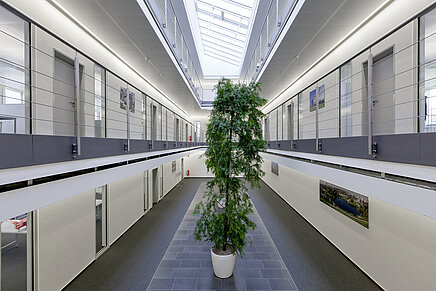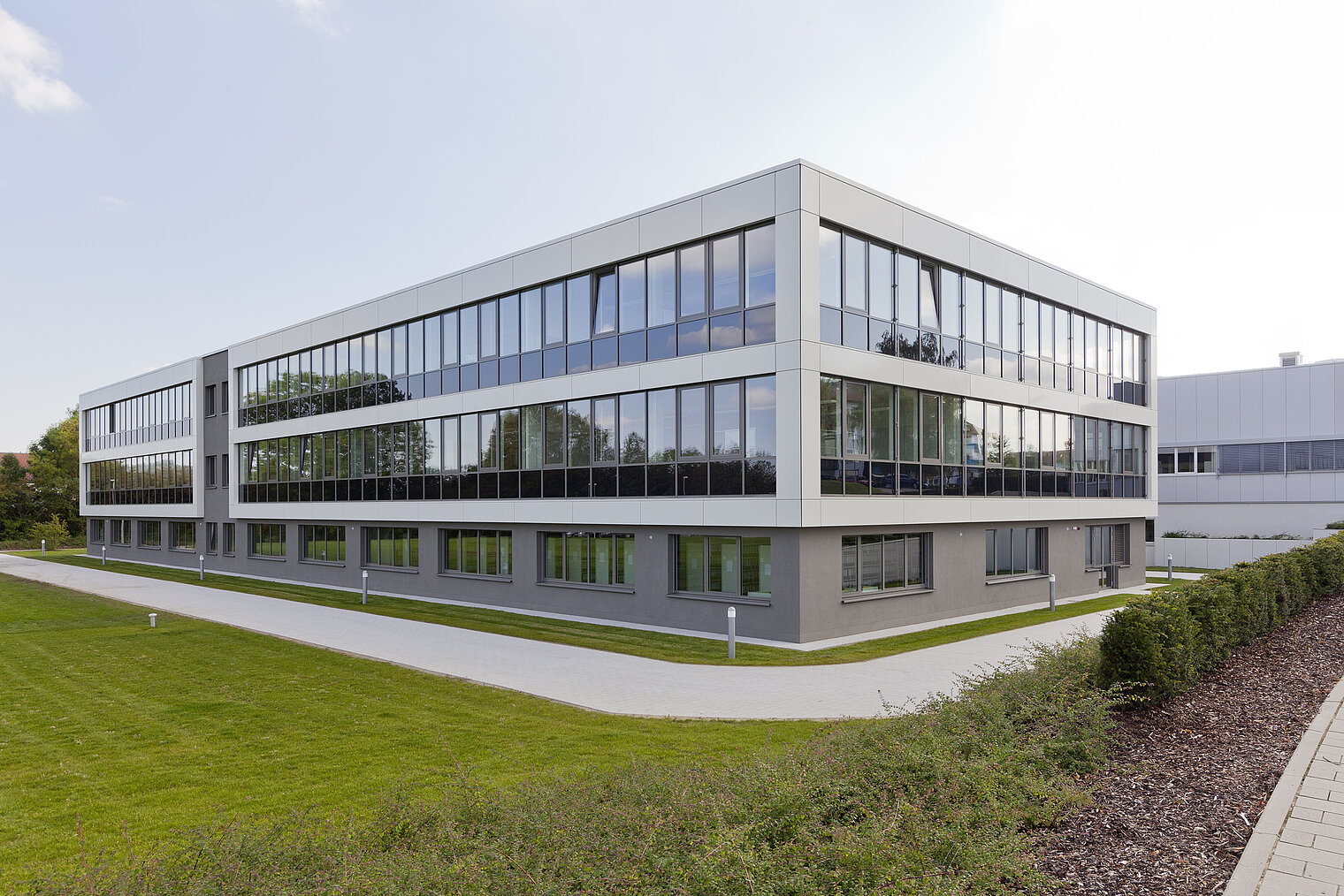 Helder design, hoge energie-efficiëntie en toekomsttechniek kenmerken de nieuwbouw. 40 aardsondes van de Weishaupt-dochter Baugrund Süd stellen alle energie milieuvriendelijk en zonder belasting door Koolstofdioxide beschikbaar, die gebruikt wordt voor verwarming en koeling. Twee Weishaupt grond/water-warmtepompen WWP S nemen de verwarming van de nieuwbouw op zich. De koeling van het gebouw gebeurt passief via het aardsondenveld. Het spreekt voor zich dat de gebouwautomatisering hier volledig up-to-date is.