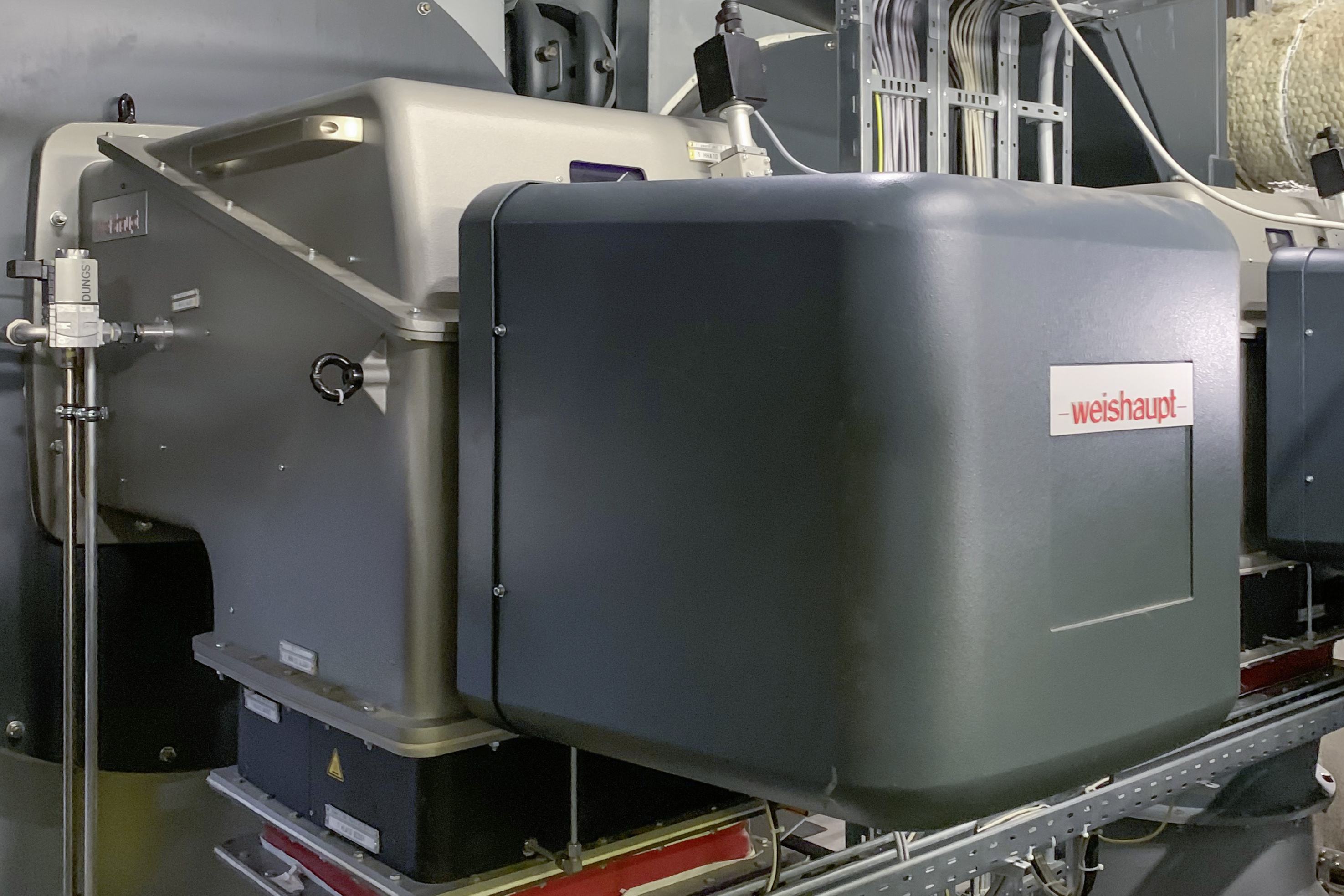Als warmtegenerators dienen twee Weishaupt gasbranders WKG80/2-A ZMH-4LN voor aardgas H met elk een brandervermogen van 20,5 MW. Naast externe recirculatie en elektronische regeling zijn de branders uitgerust met toerental- en O2-regeling. De NOx-emissiewaarden liggen tussen 40 en 45 mg/m3 en liggen daarmee duidelijk onder de grenswaarden van de EU-richtlijn.
