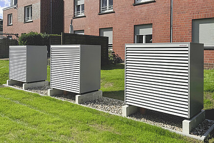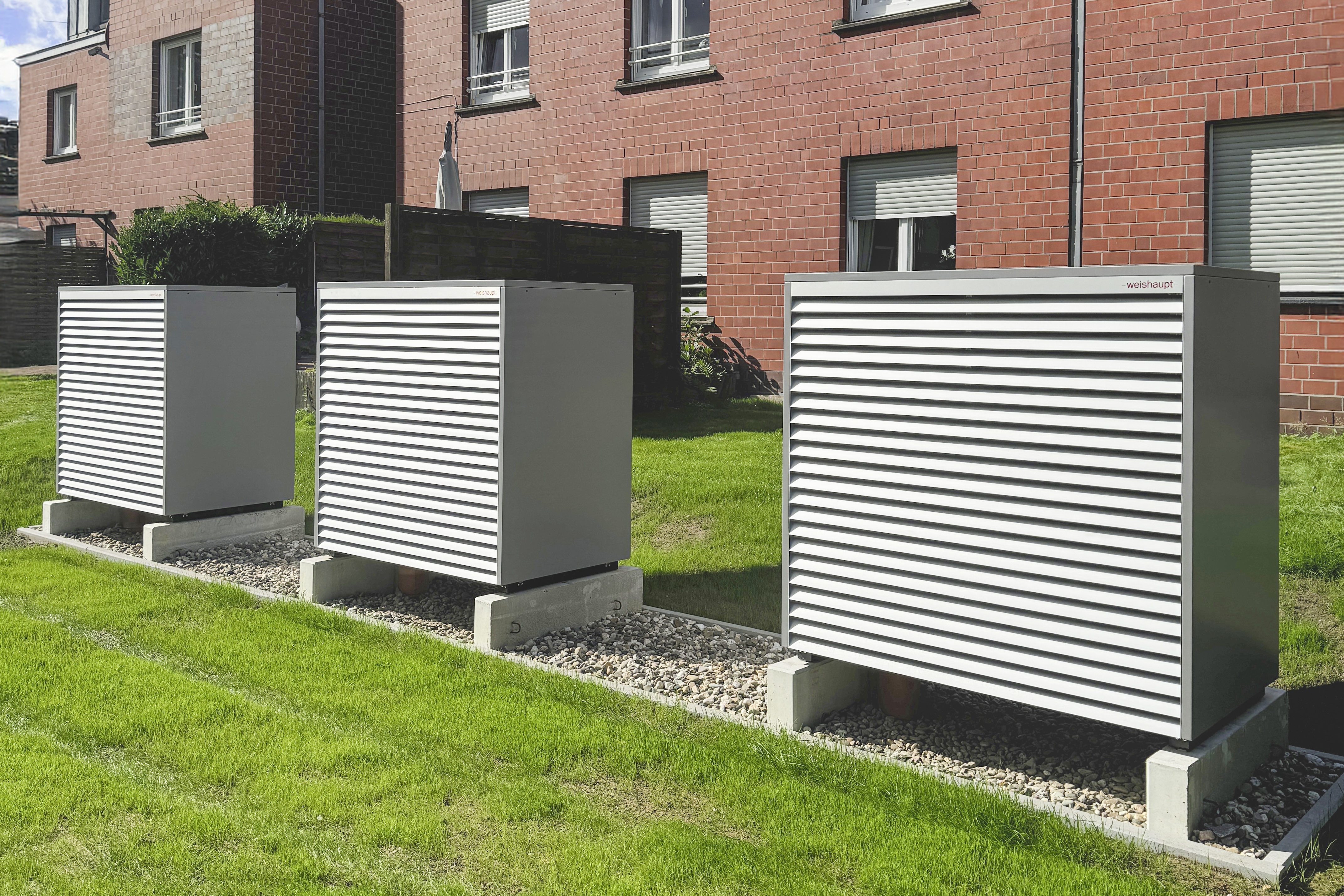 Dit gold ook voor een wooncomplex met 19 wooneenheden in de Bergheimer Straße in Essen. In het kader van de energetische modernisering moest ook de volledige verwarmingsinstallatie worden vernieuwd. Behrens Versorgungstechnik GmbH uit Essen was verantwoordelijk voor de planning en installatie. Er werd gebruik gemaakt van een cascade van 3 Weishaupt lucht/water-warmtepompen Biblock® WBB 20. Naast het bijzonder stille geluidsniveau en de hoge efficiëntie was de exploitant van de installatie ook overtuigd door het grote modulatiebereik en de bedrijfszekerheid van de Biblock® cascadeoplossing.