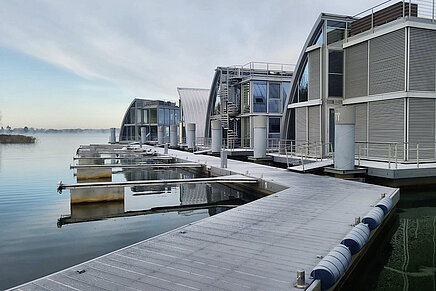 Leven op het water heeft een bijzondere charme: thuis zijn buiten de vaste aarde, al is het maar tijdelijk, belooft individualiteit, een vleugje vrijheid, een bijzondere band met de natuur. Als de drijvende huizen dan nog hypermodern gebouwd en met toekomstzekere techniek uitgerust zijn, wordt uit een ongewoonlijk gepositioneerd onderdak een modelproject gemaakt.