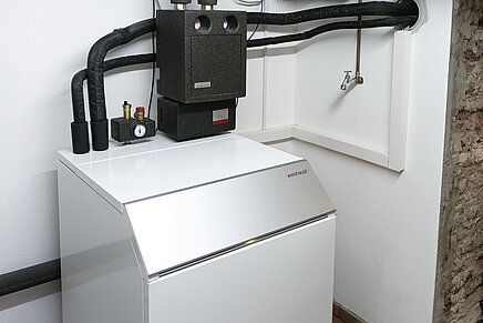 Le choix de la pompe à chaleur Weishaupt Biblock® WBB 20 pour ce projet a été déterminé par son fonctionnement extrêmement silencieux, sa température de départ pouvant atteindre 65 °C et son efficience élevée avec un coefficient de performance (COP) de 4,4 (pour les A2/W35).