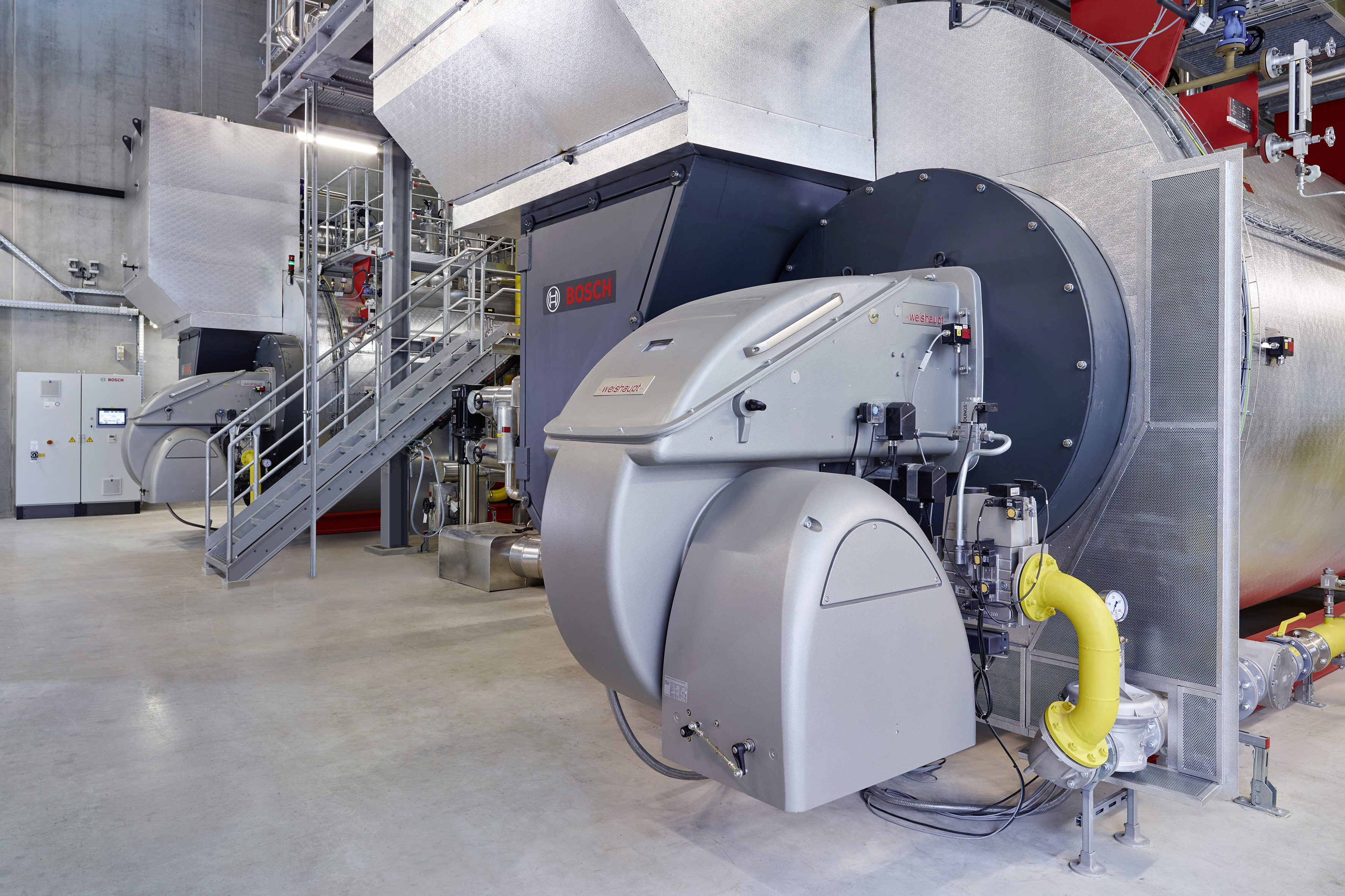 Depuis 2016, une nouvelle chaufferie située sur le site de l'usine fournit les quelque 100 000 tonnes de vapeur nécessaires chaque année. Au cœur de l'installation se trouvent deux chaudières équipées de brûleurs à gaz Weishaupt de type WKmono-G80 qui servent de générateurs d'énergie. Les grands brûleurs à régulation de vitesse et d'oxygène ont chacun une puissance de combustion de 13 mégawatts et produisent moins de 100 milligrammes d'Oxydes d'azote Tooltip icon (NOX) par mètre cube de fumées.