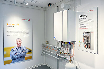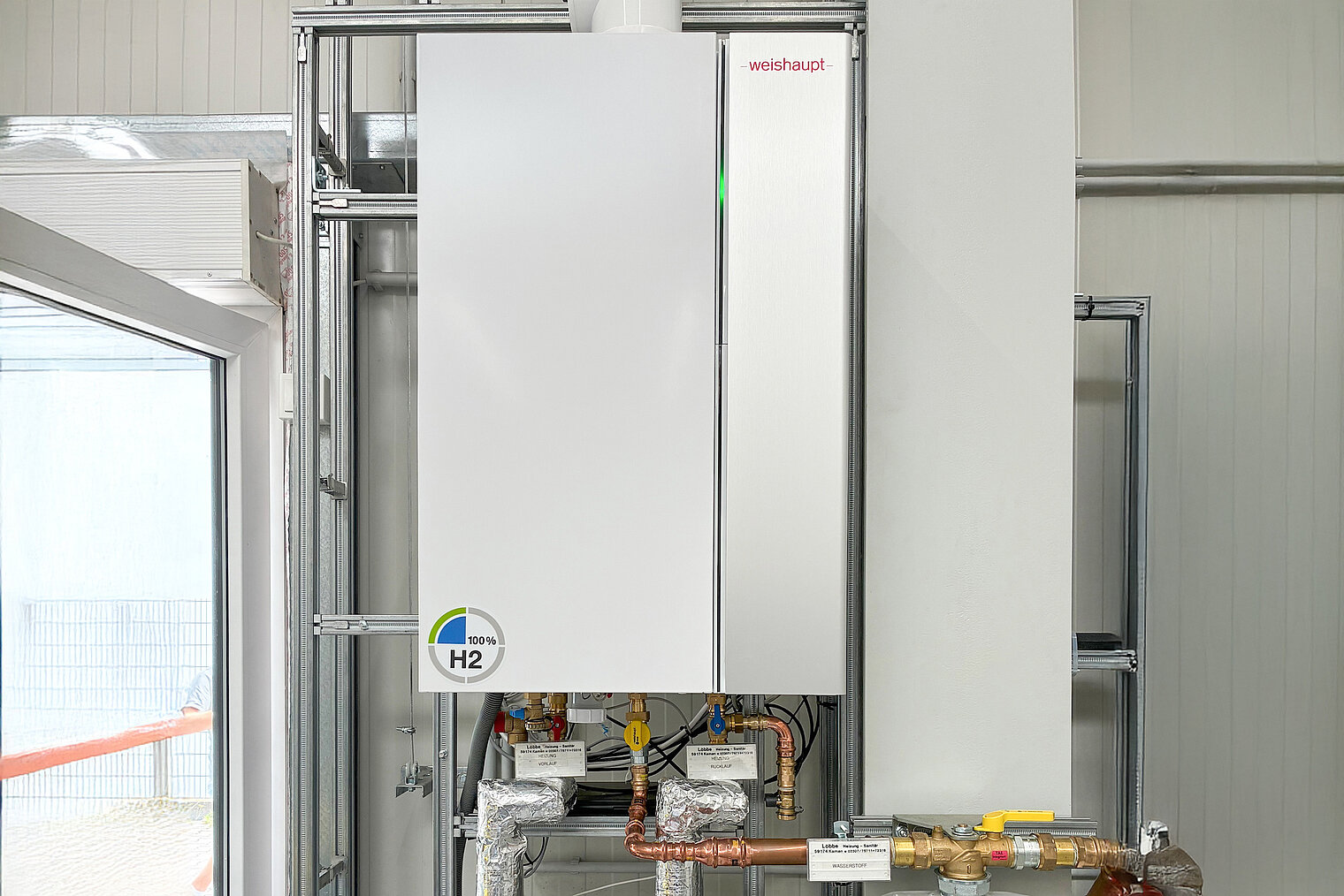 La Chaudière à condensation Weishaupt Thermo Condens® fonctionnant à 100 % à l'hydrogène vert dans le showroom du projet H2HoWi.